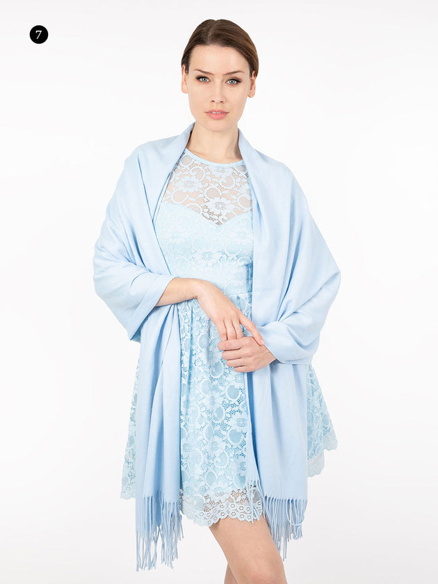 1. Women's Plain Pashmina Shawl with Tassels in Pale Blue