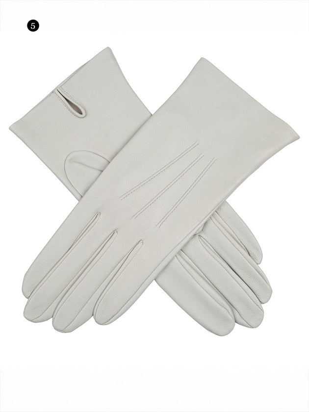 2. Joanna, Women's Three-Point Leather Gloves in Silver